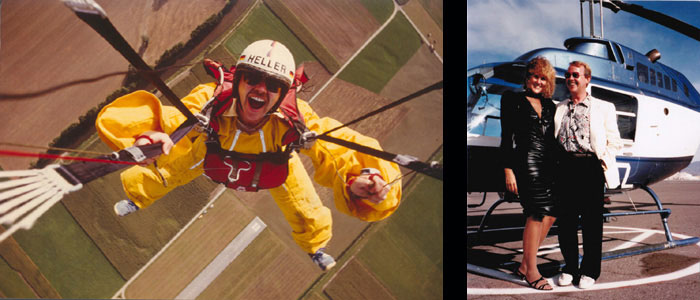 2. Meine damalige Freundin Gabi am 1. Mai – dem Tag der Arbeit – in Las Vegas geheiratet (Bild siehe unten), Bell 206 gechartert und selbst am Steuerknüppel über Strip, Hoover Dam und Grand Canyon geflogen!